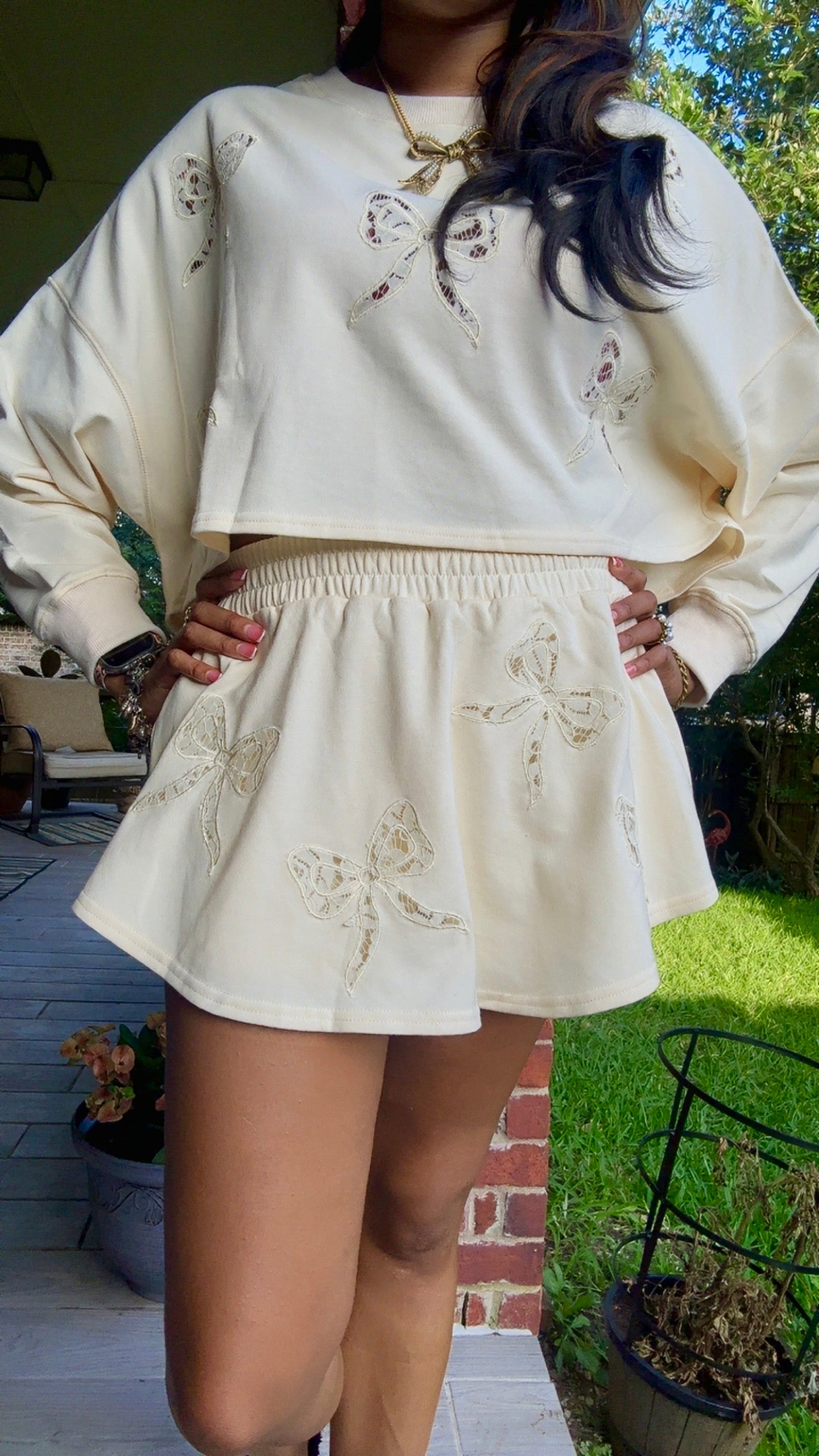 Bow Laser Cut Lounge Skort Bottoms