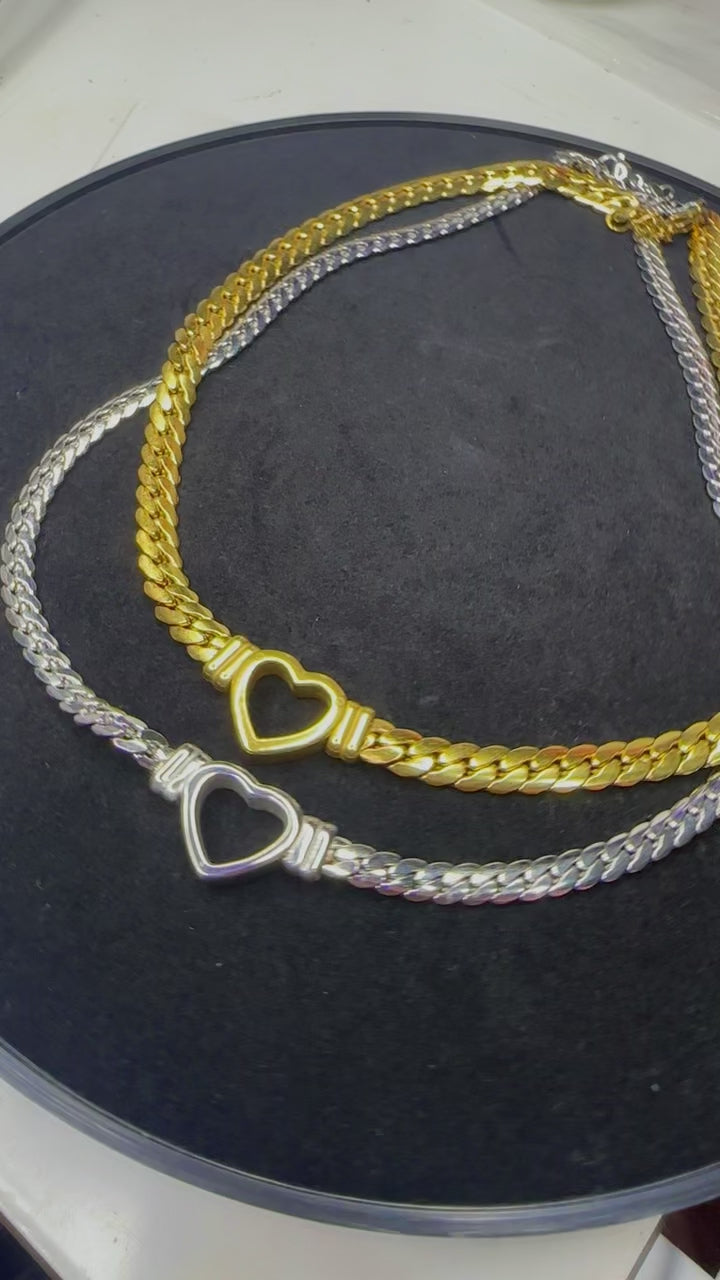 Gold & Silver Small Open Heart Chain Necklace