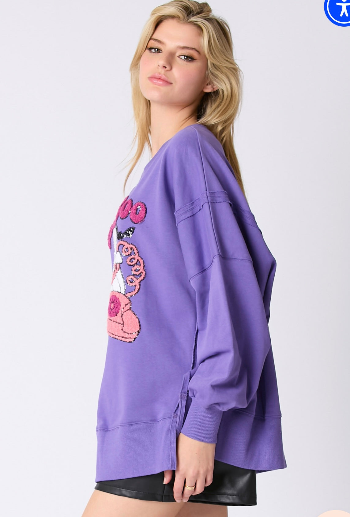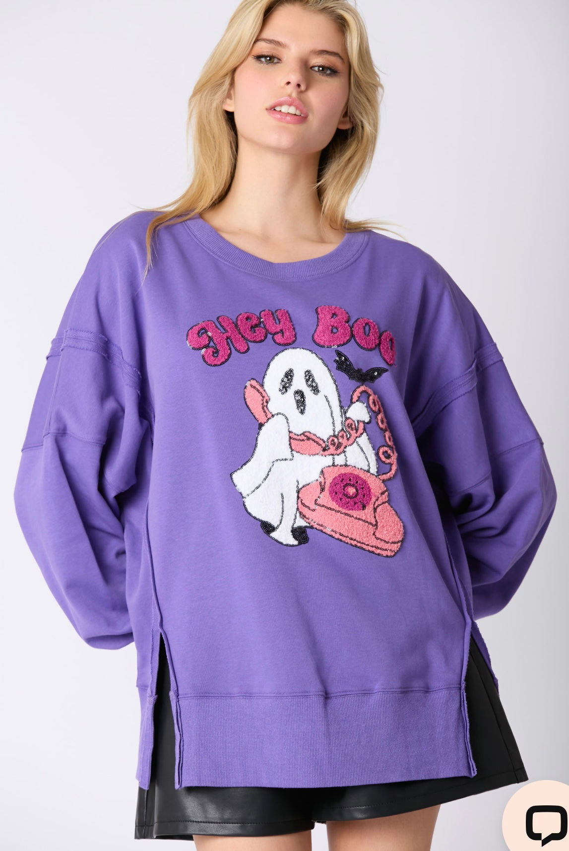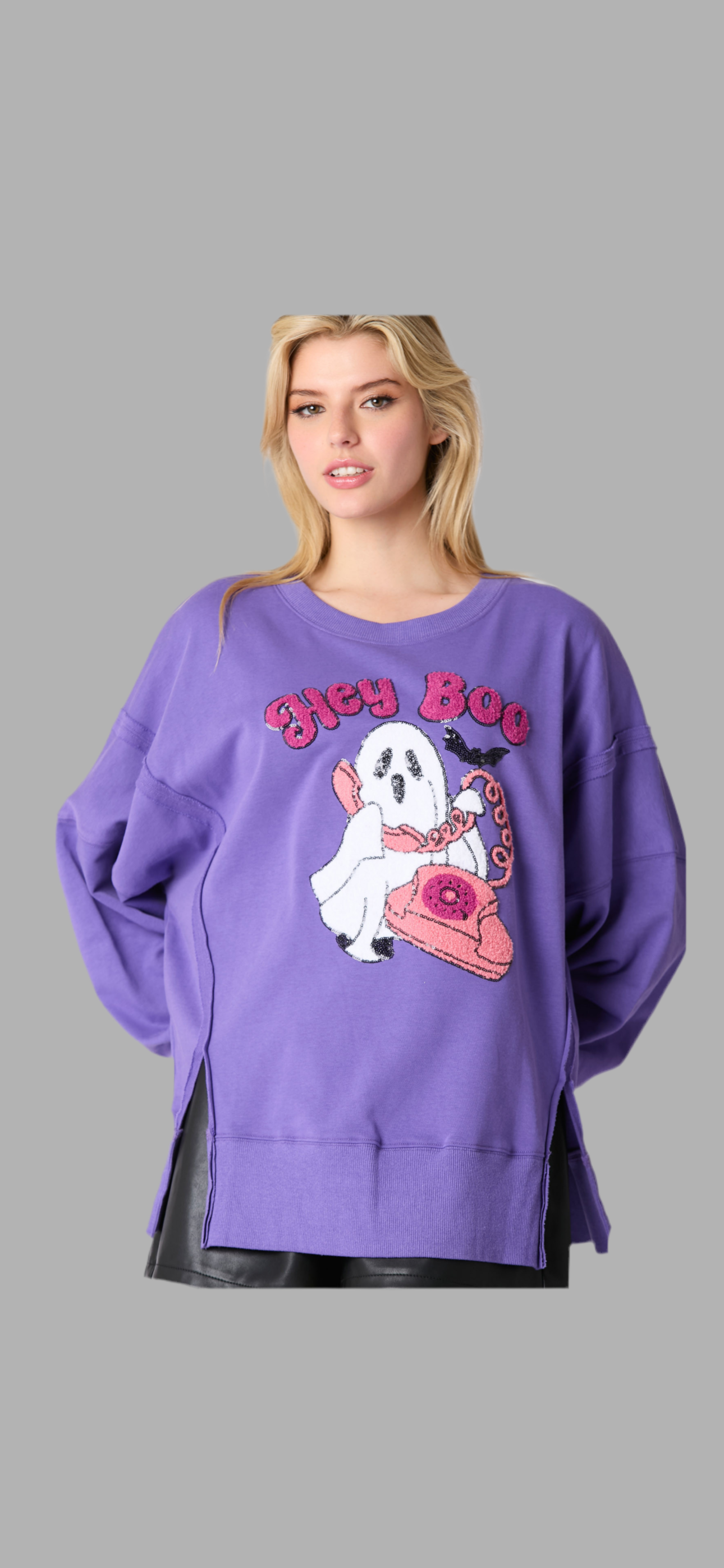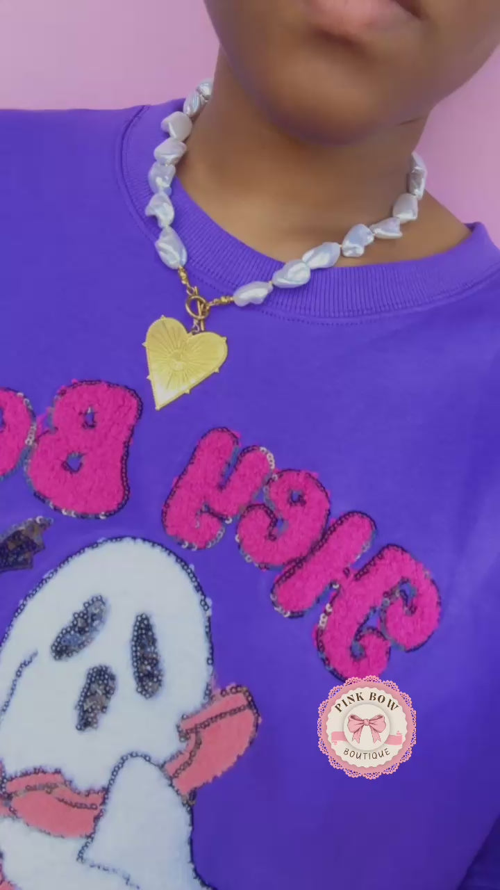 Hey Boo Towel & Sequins Embroidery Halloween Sweatshirt