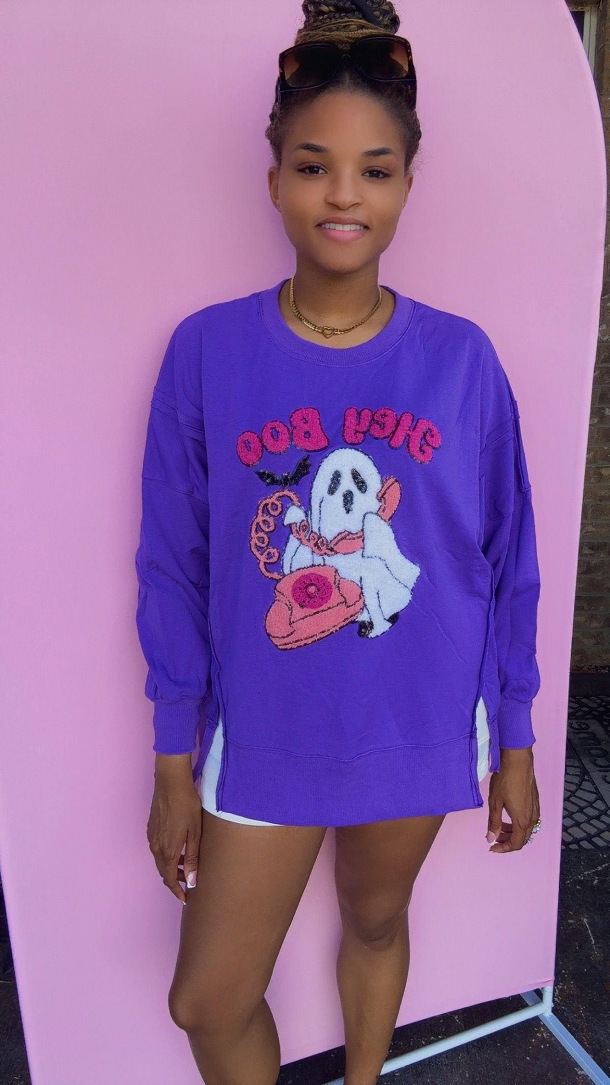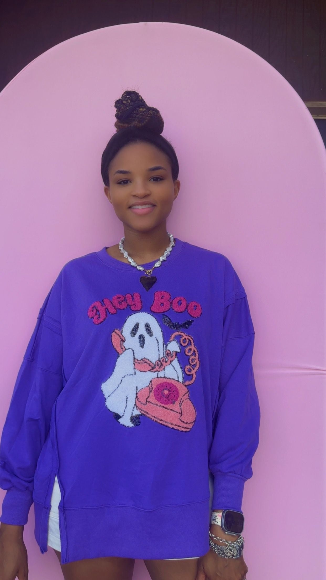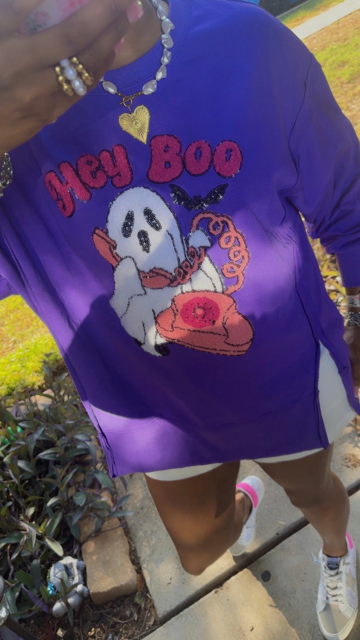 Hey Boo Towel & Sequins Embroidery Halloween Sweatshirt