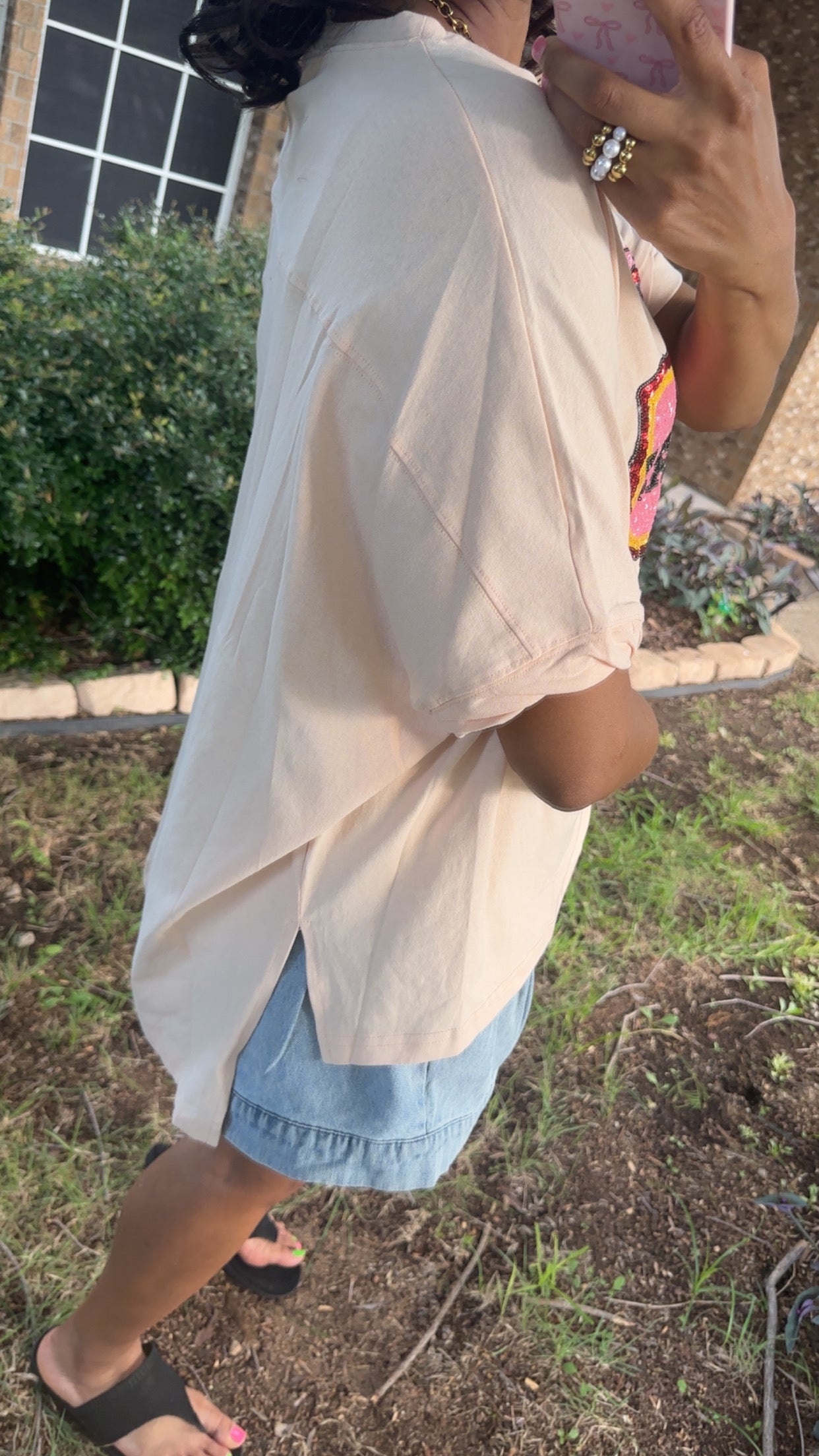 - Loose fit model wearing a size small