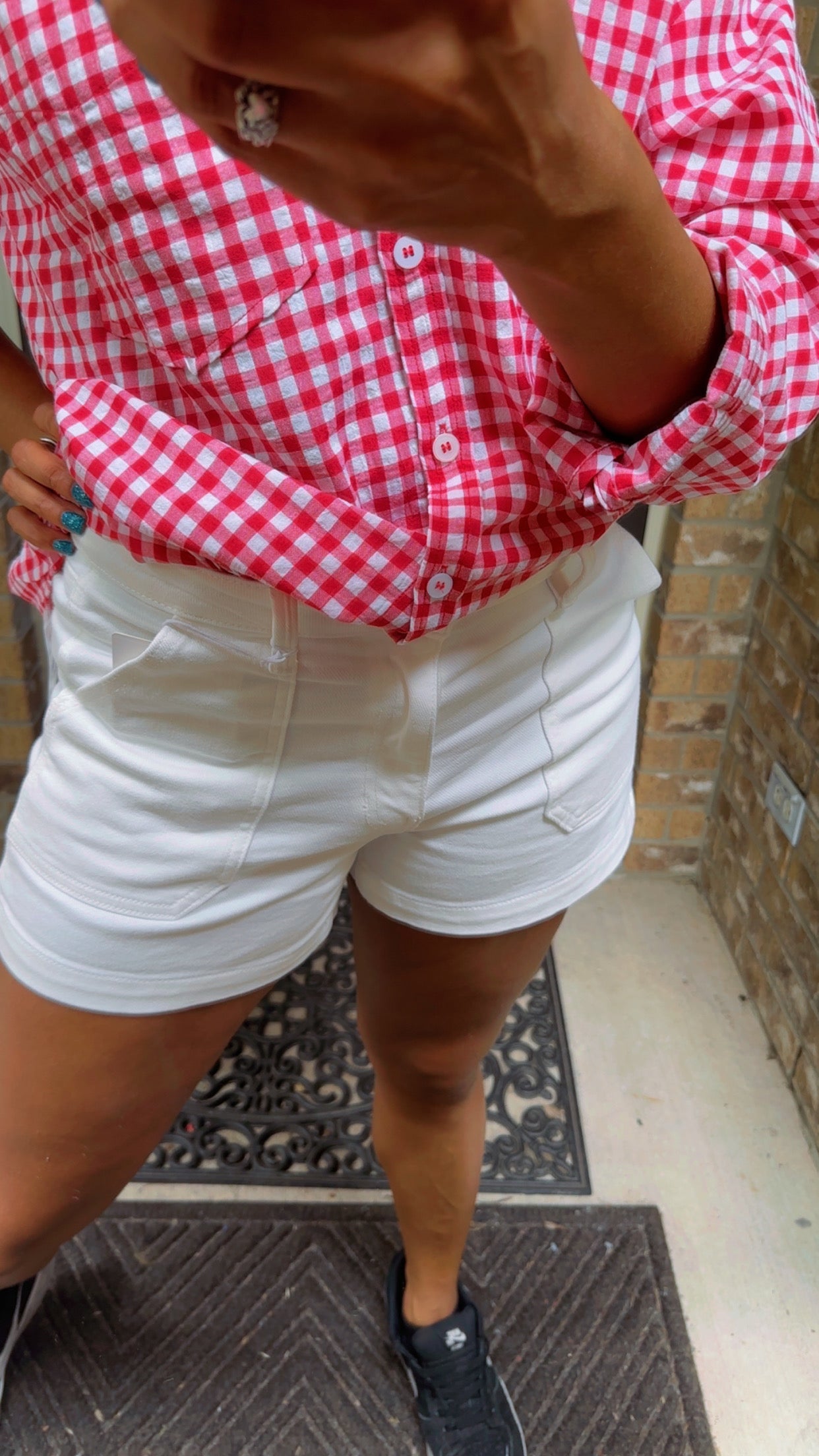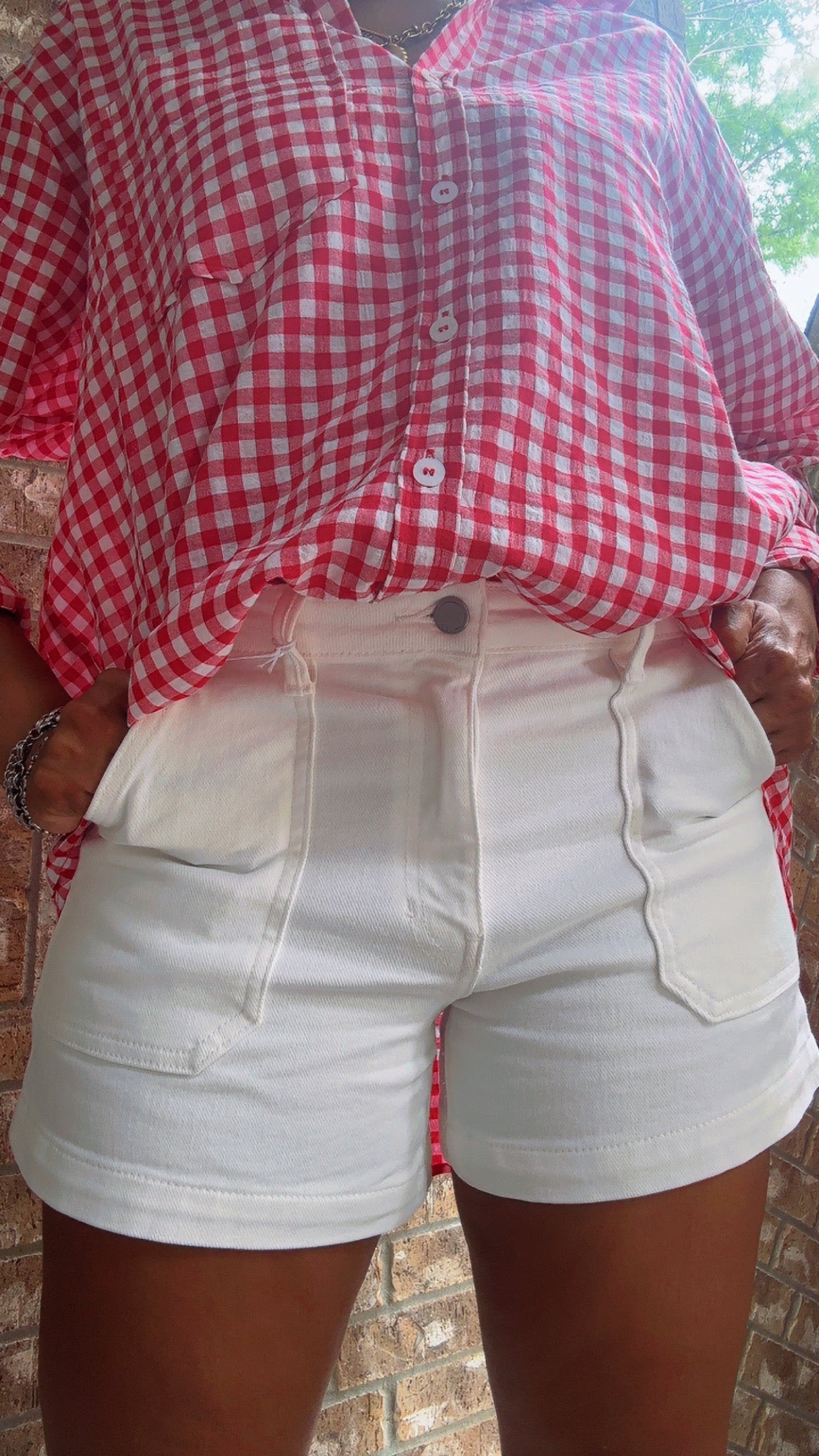Crafted from durable, breathable fabric, these shorts are built for everyday comfort and functionality. Featuring utility pockets for ample storage, they offer both style and practicality. The sleek white color provides a clean, versatile look, making them easy to pair with virtually any top or accessory for a fresh, effortless outfit.
