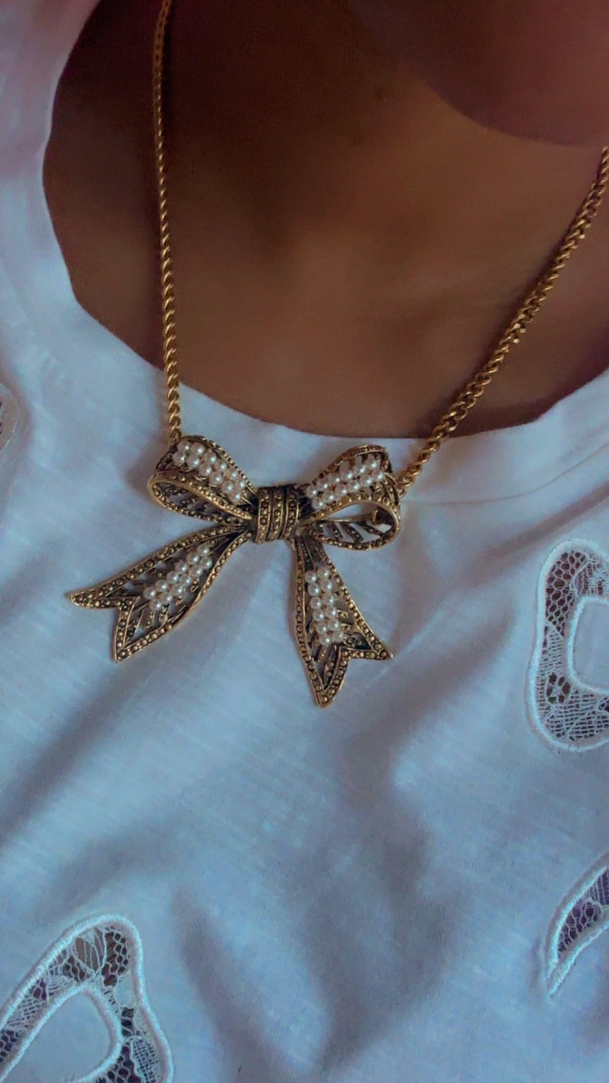 Bow Necklace Glass Pearls